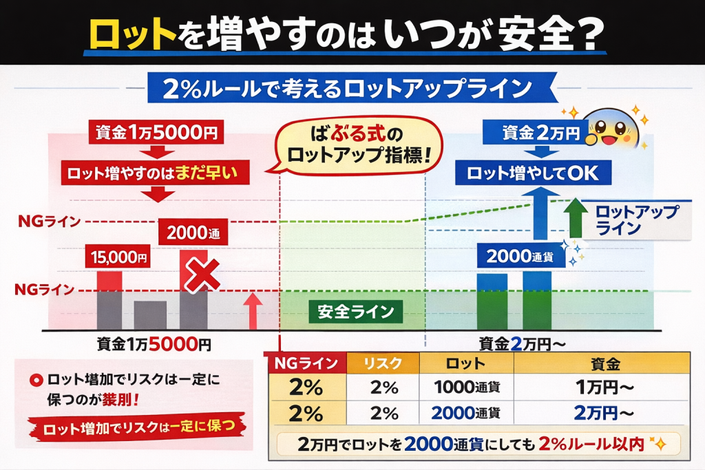 「資金が増えたら、いつロットを上げていいのか?」